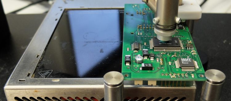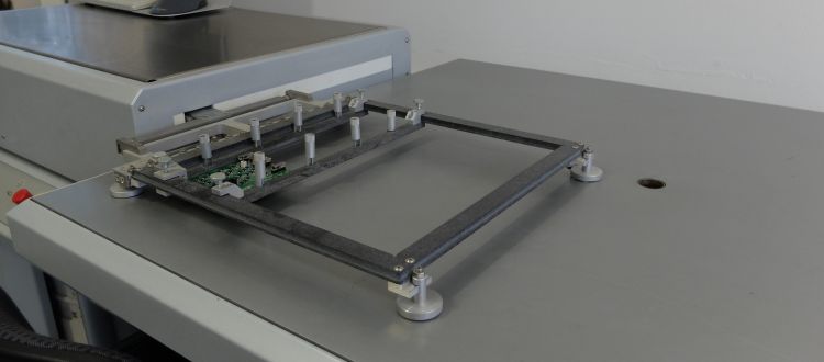 Für konventionelle Lötarbeiten haben wir eine Selektivlötanlage im Einsatz. Mit diesem System lassen sich auch besonders schwierige Baugruppen löten. Der gesamte Prozess findet unter Schutzgasathmosphäre statt.